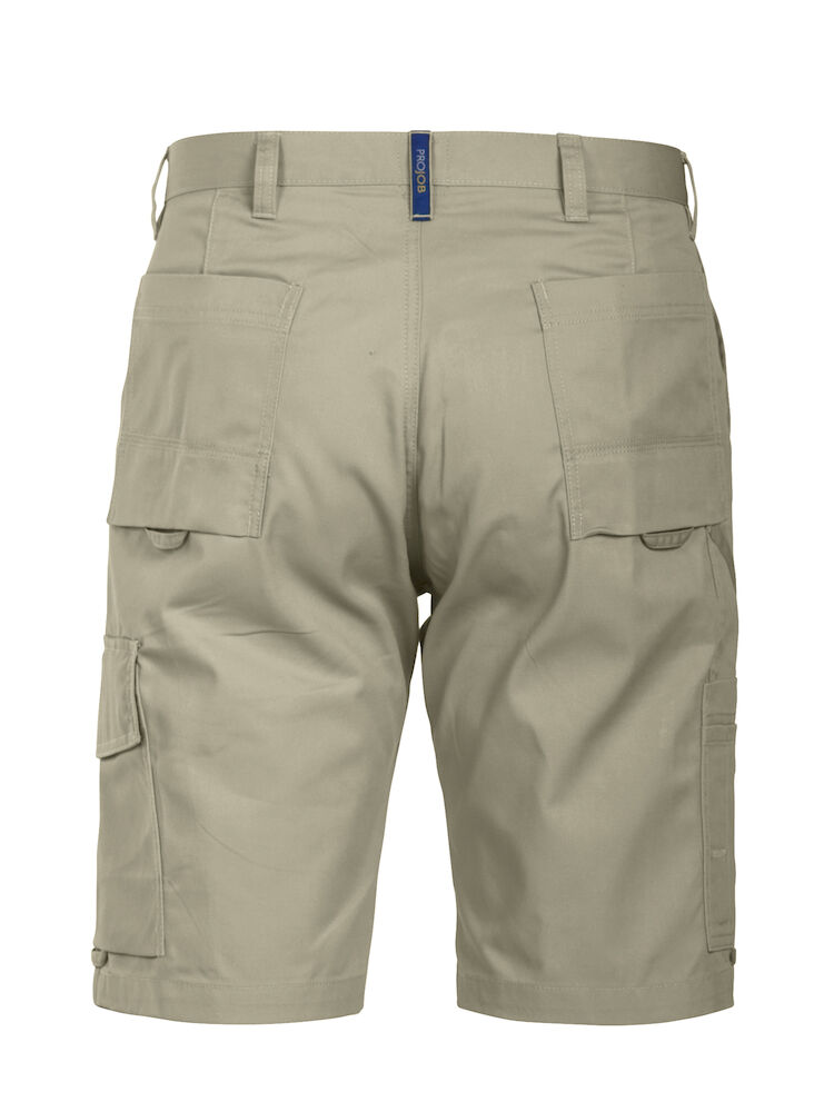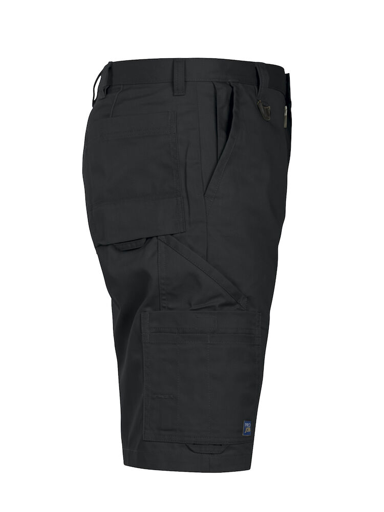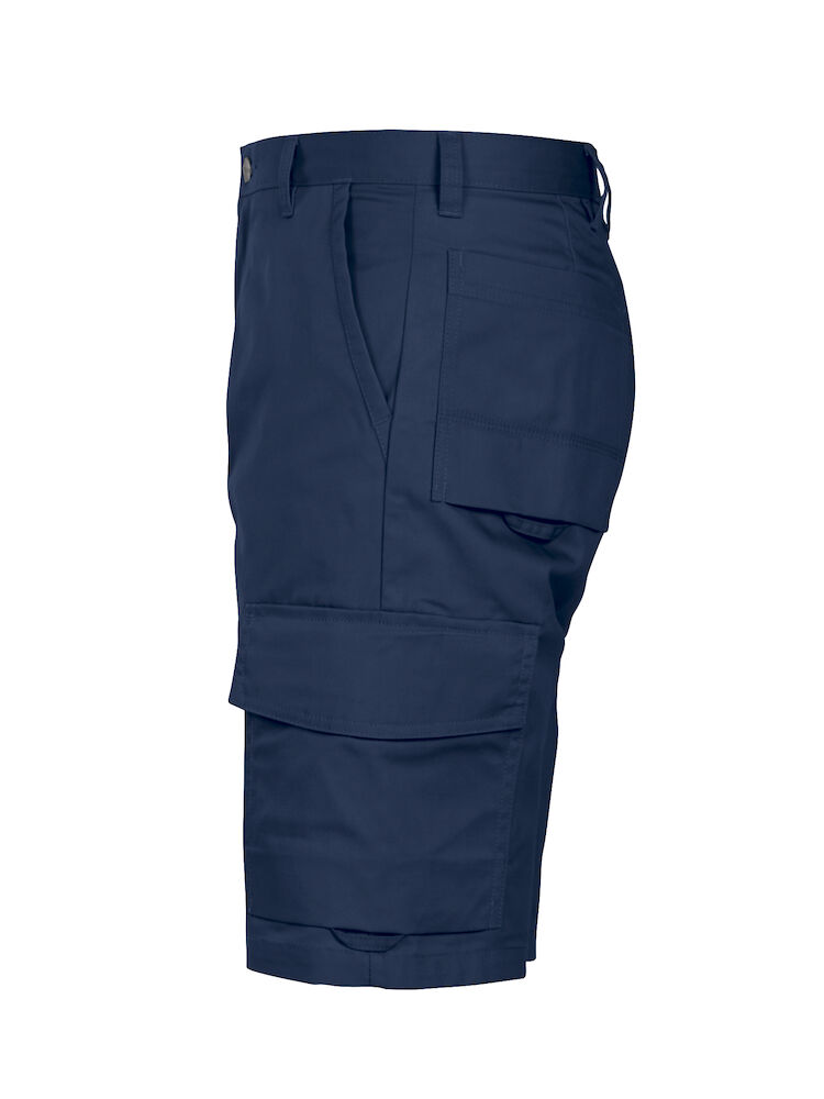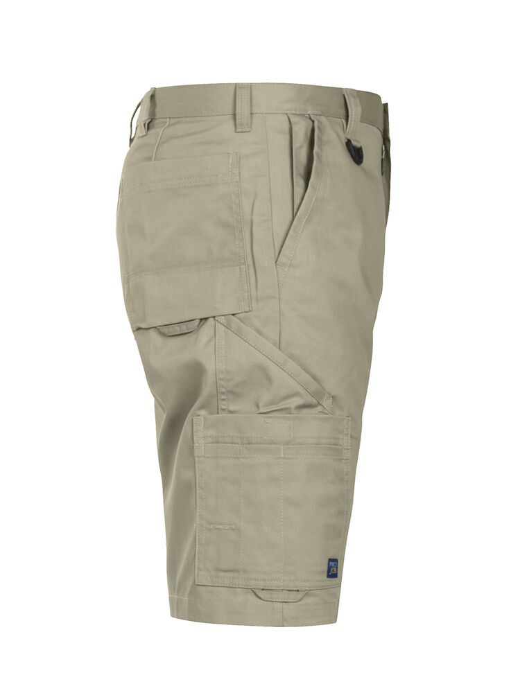 Shorts uten fold i front. Sidelommer i front, sikkerhetslomme med glidelås på høyre side. To utenpåliggende baklommer. To benlommer. Venstre benlomme har klaff og innvendig mobillomme. Høyre benlomme har plass til mobiltelefon, penner, papir og tommestokk. D-ring i front. Hemper under baklommer og benlommer for å feste Inbags i.