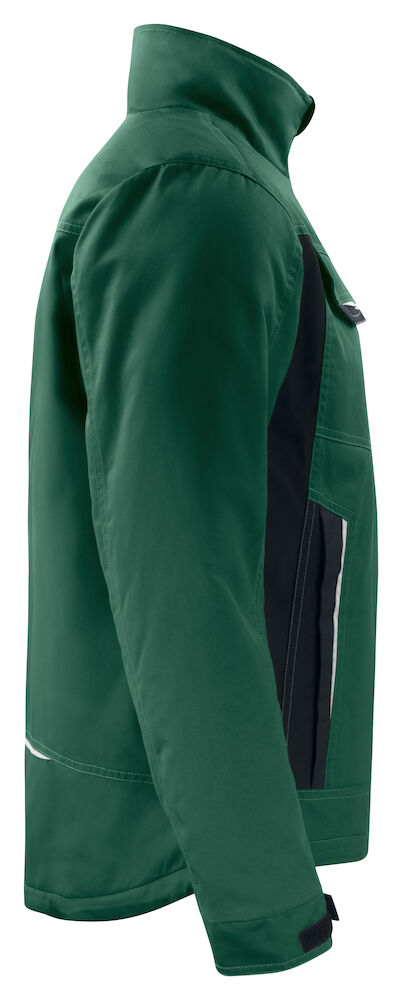 Foret arbeidsjakke i lettstelt polyester/bomull. To brystlommer, D-ring i venstre brystlommer til ID-kort. Glidelås i kraven med innvendig vindlås. Innsydde framlommer med glidelås og forsterket kant. To innerlommer, hvorav en stor til dokumeneter og en til mobiltelefon. Regulerbare armavslutninger og midje. Reflekser foran og bak. Forlenget rygg.