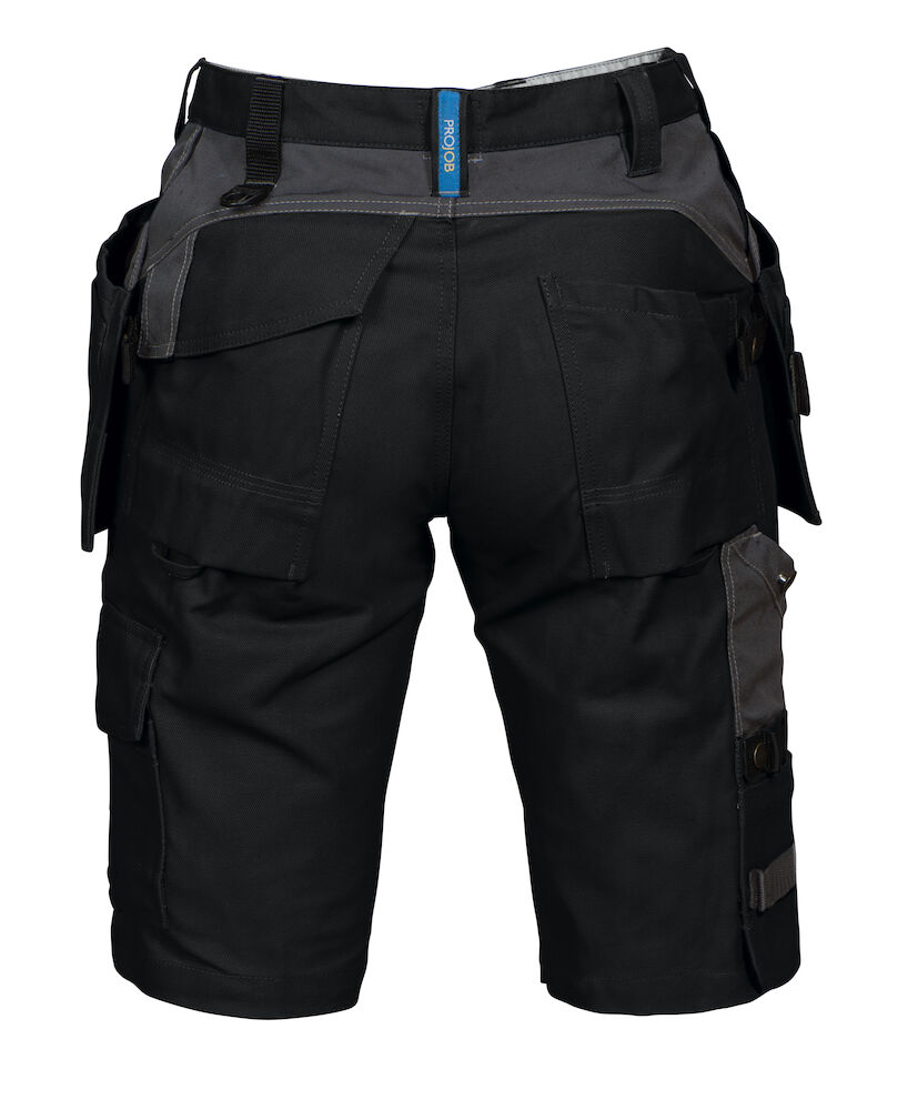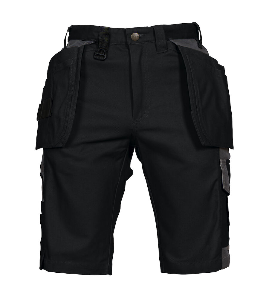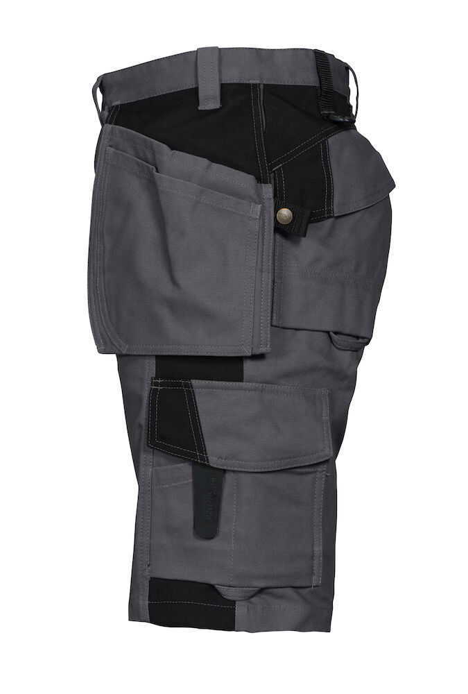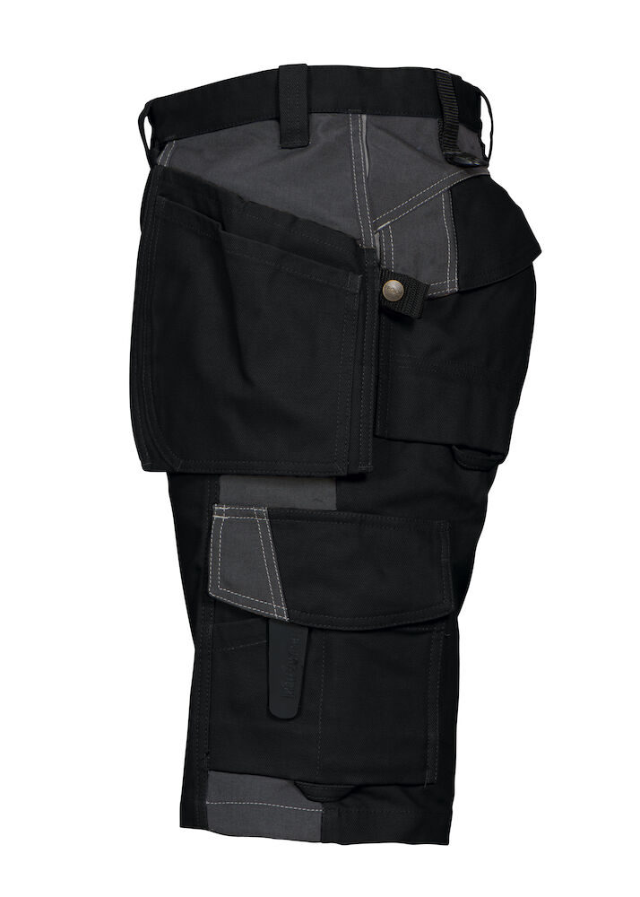 To hengelommer som kan puttes bort, en med ekstra lomme og en med verktøyshemper. Hengelommene er forsterket med 100% Cordura®. Dype sidelommer med plass til hengelommene. Ekstra forsterkninger på lår med dobbelt stoff. Benlommer med plass til telefon, penn og verktøy. To justerbare hammerhanker. To D-ringer. Tommestokklomme med verktøyslomme og knivknapp. Ekstra brede baklommer. Baklommer og benlommer med hemper til Inbags.