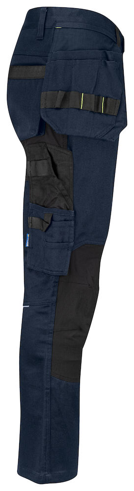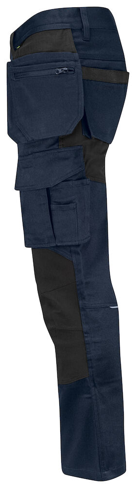 En håndverksbukse i slitesterk bomull med Cordura®stretch over rumpa. Hengelommer med Cordura®-forsterket innside, hvorav den ene har glidelås. Hengelommene kan fjernes ved å sprette opp en kontrastfarget, skjult tråd. Benlommer, på venstre side med plass til verktøy og penn, samt mobillomme med magnetlås og feste for ID-kortholder. På høyre side er det tommestokk- og verktøylomme med knivknapp. Fester for verktøyholdere. Bøyde knær. Knebeskyttelseslommer som kan justeres i to høyder, åpnes fra innsiden. Refleksdetaljer/piping på leggen gir økt synlighet.