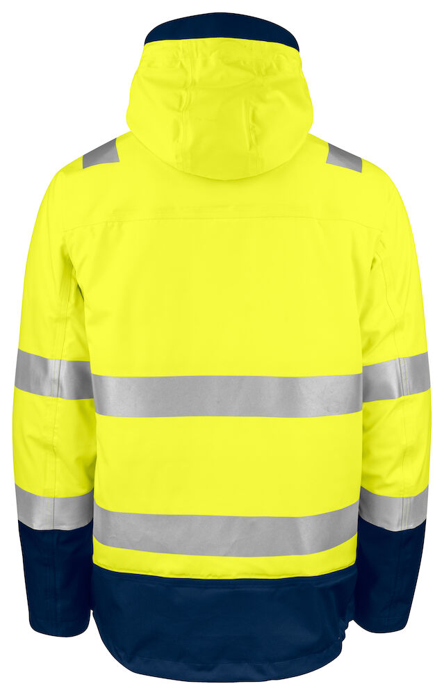 Vind- og vanntettjakke med uttagbar innerjakke. Ytterjakken har toveis glidelås i front – dekket med en klaff for å forhindre vind- og vanngjennomtrengning. Klaffen festes med trykknapper. Transferreflekser. Vertikale brystlommer med vanntette glidelåser – feste for ID-kortkolder på den venstre. Romslige sidelommer. Avtagbar regulerbar hette. Jakken kan strammes med snor i nederkant. Regulerbare ermavslutninger med borrelås, og innvendig mansjett med tommelgrep.Lett quiltet innerjakke. Sidelommer med glidelås, og brystlomme med innvendig feste for ID-kortholder. Innerlomme med glidelås og mobillomme. Innerjakken kan også brukes separat.