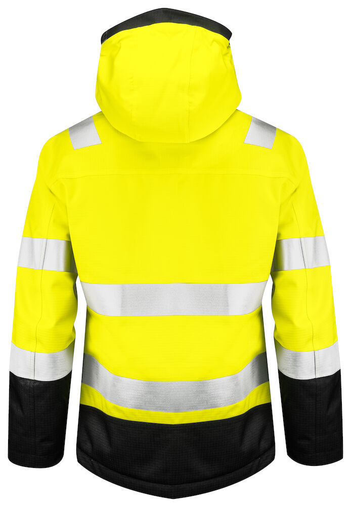 Vind- og vanntett fôret jakke i rip-stop materiale. Teipede sømmer. Toveis glidelås i front med utvendig vindklaff for å hindre trekk og vanninntrengning. Lukkes med trykknapper. Brystlommer på begge sider med glidelås, den venstre med innvendig feste for ID-kort. Sidelommer med glidelås. Innerlommer på begge sider med glidelås, på venstre side en åpen lomme som lukkes med borrelås. Justerbar hette i to posisjoner, hetten er også avtagbar. Justerbare mansjetter med borrelås, samt en innermansjett med tommelgrep for en tett passform. Justerbar snøring i nederkant. Fôret kan åpnes for å forenkle trykk og brodering.