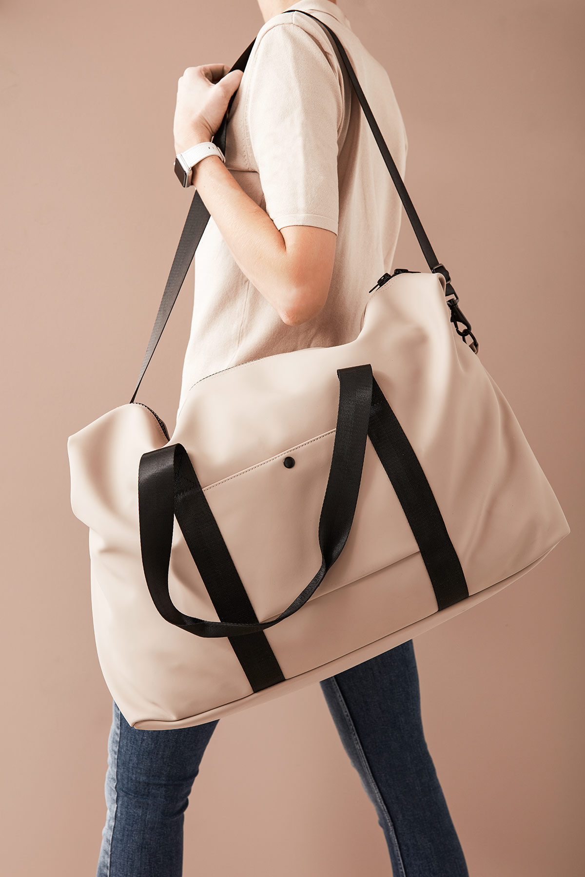 Med denne romslige weekendbagen over skulderen vil du garantert bli lagt merke til av andre da den gir uttrykk for både stil og minimalisme. Bagen har en skulderreim som kan justeres, men kan også bæres i komfortable håndtak. For at du enkelt skal kunne organisere det du pakker med deg har bagen et rom med glidelås på den ene siden og en liten lomme med trykknapp på den andre. Produsert i nubuck-PU noe som skaper en bag med vannavvisende egenskaper.