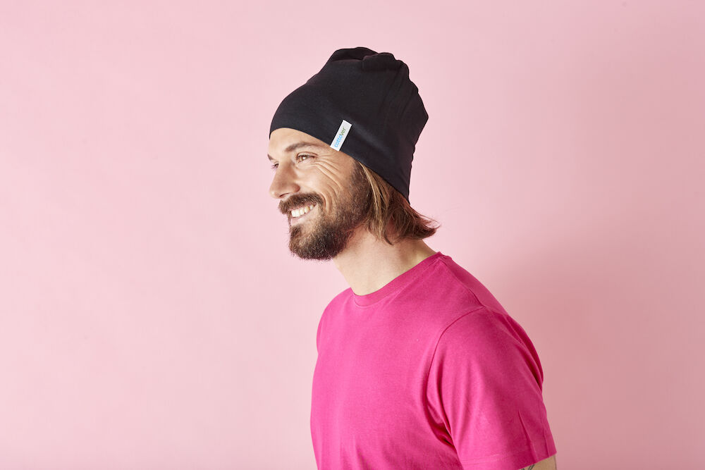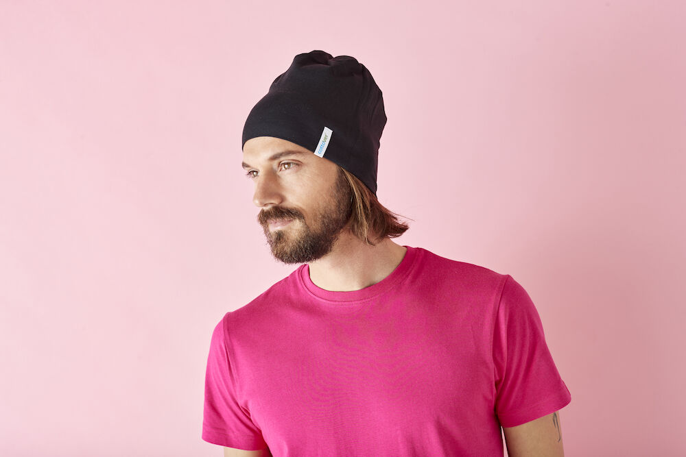 Myk og sporty lue i jersey med dekorsømmer ton-i-ton.