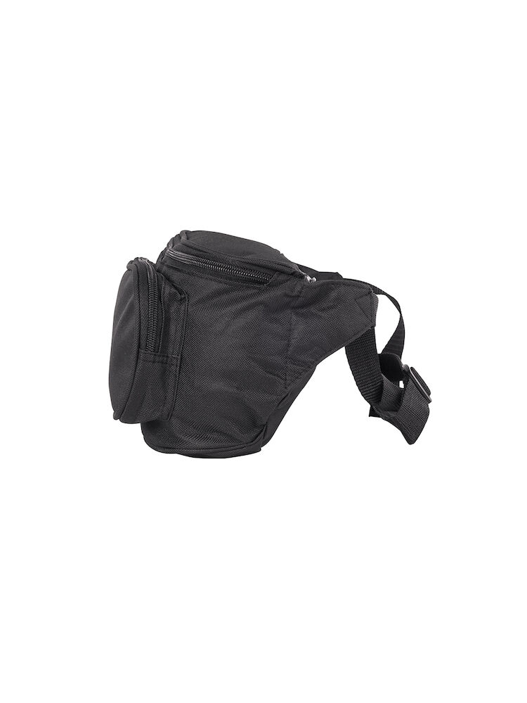 Waistbag med en hovedlomme og to mindre lommer med glidelås.