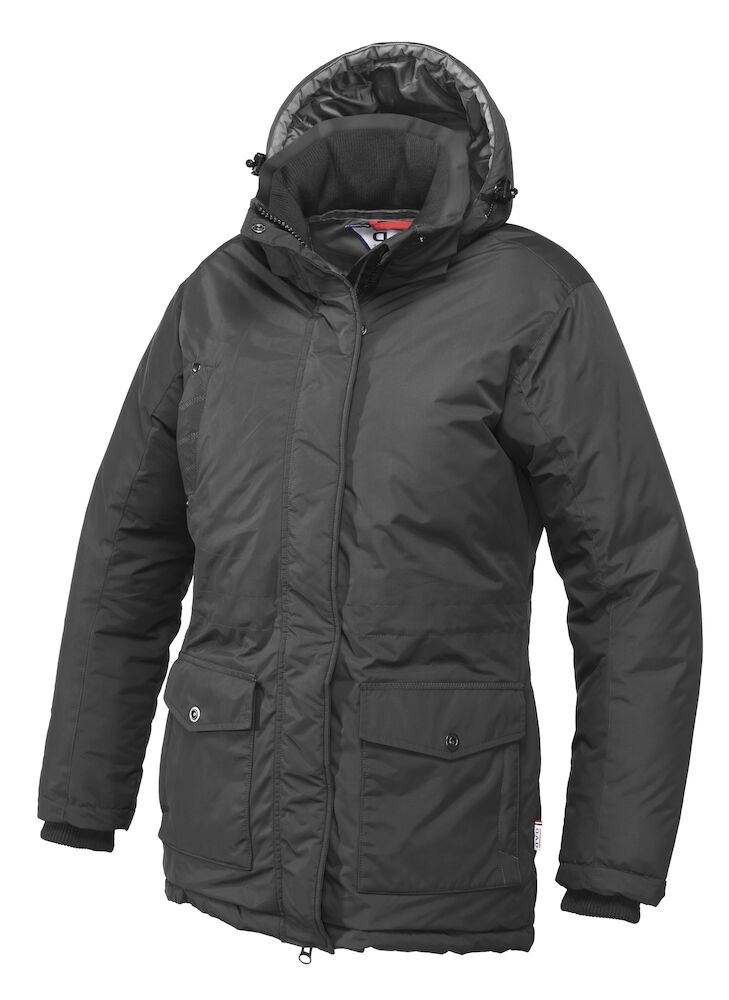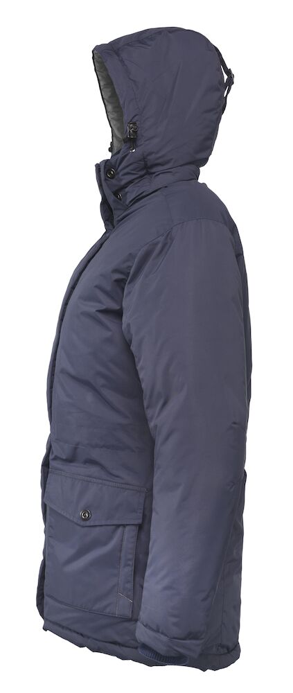 Sportslig parkasmodell i vind- og vannavvisende materiale (WP 3000/MVP 3000). Helfôret med forlenget rygg og snor i midjen. Mansjetter på ermene og på innsiden av kragen for god komfort. Knappestolpe med trykknapper samt kraftig glidelås i front og på brystlomme. To lommer i front, to lommer på innsiden og avtagbar og justerbar hette.