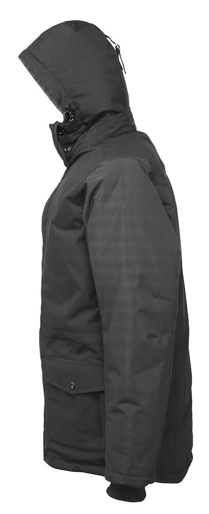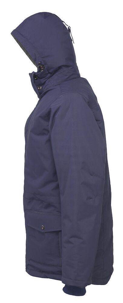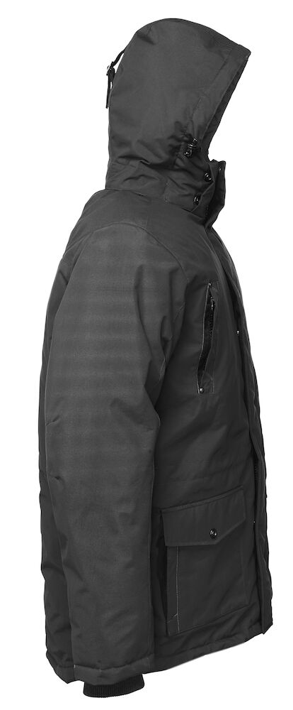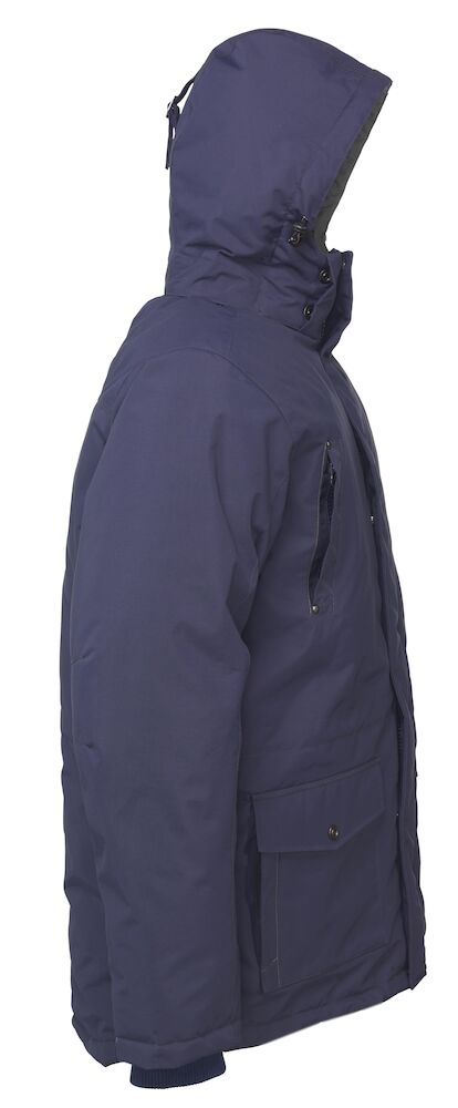 Sportslig parkasmodell i vind- og vannavvisende materiale (WP 3000/MVP 3000). Helfôret med forlenget rygg og snor i midjen. Mansjetter på ermene og på innsiden av kragen for god komfort. Knappestolpe med trykknapper samt kraftig glidelås i front og på brystlomme. To lommer i front, to lommer på innsiden og avtagbar og justerbar hette.