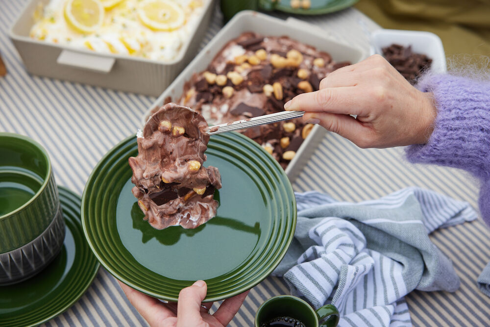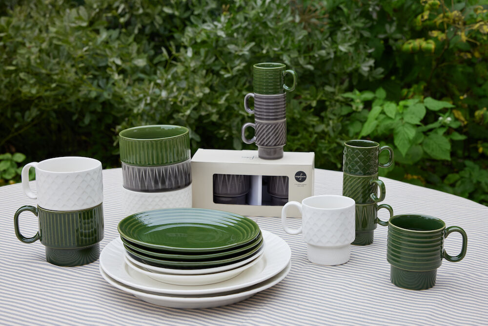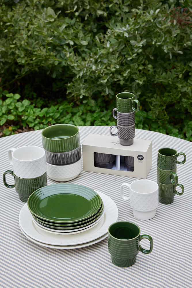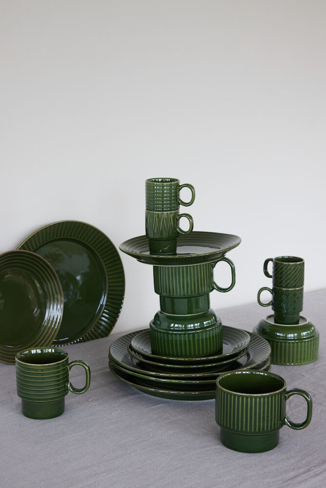 Skål med karakteristisk utseende, nå også i en vakker grønn farge. En dyp skoggrønn som passer perfekt med seriens andre farger, men som også blir noe veldig spesielt på egne ben. Vakre mønstre og linjer pryder de forskjellige delene av serien og skaper en følelse av trygghet og hjemmefølelse. Produktet er en del av Coffee & More-serien, utviklet av Sagaform i samarbeid med designeren Margot Barolo.