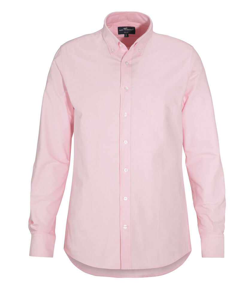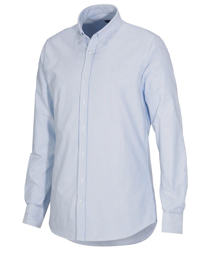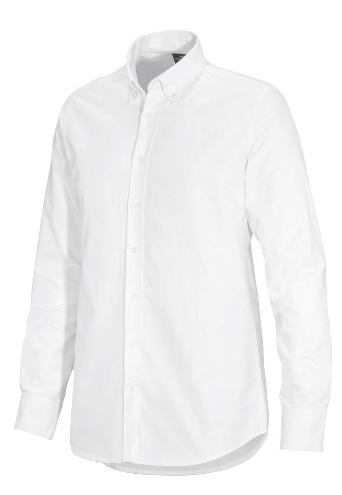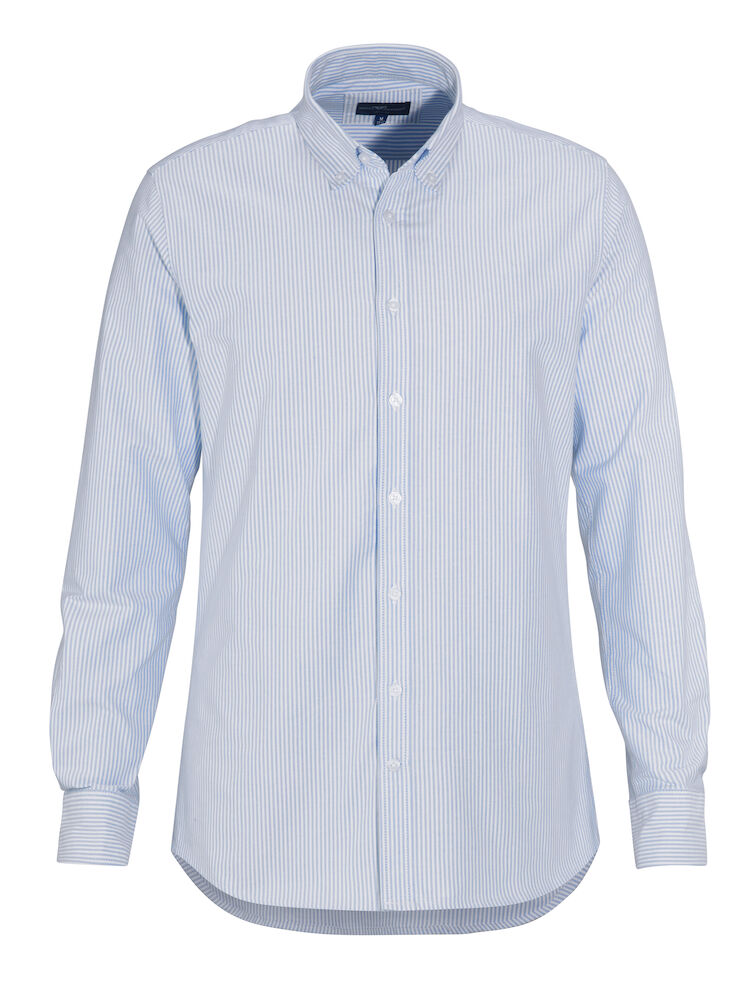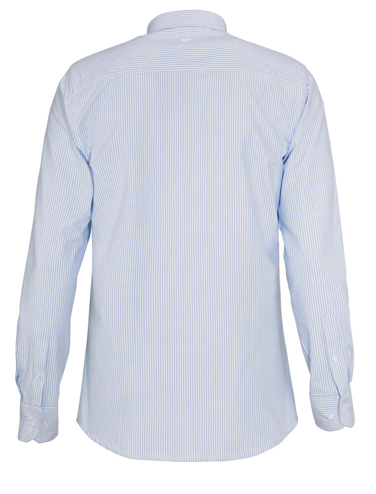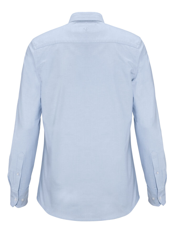 Oxford skjorte med perlemorsknapper. Broderi som går ton-i-ton i nakken. Herremodellene har button down-krage. Comfort har i tillegg en brystlomme. Damemodellen har en turn down-krage og er innsvingt for å gi en bedre passform.