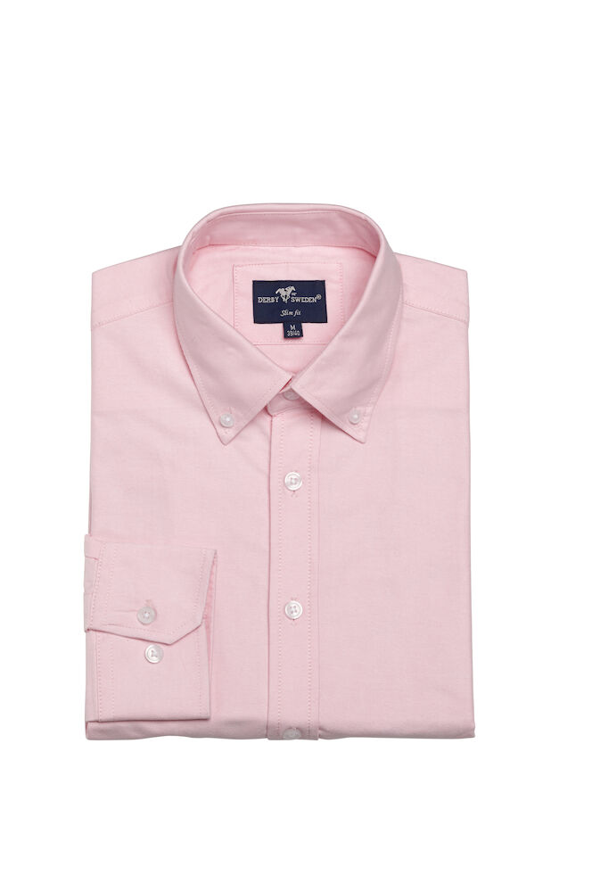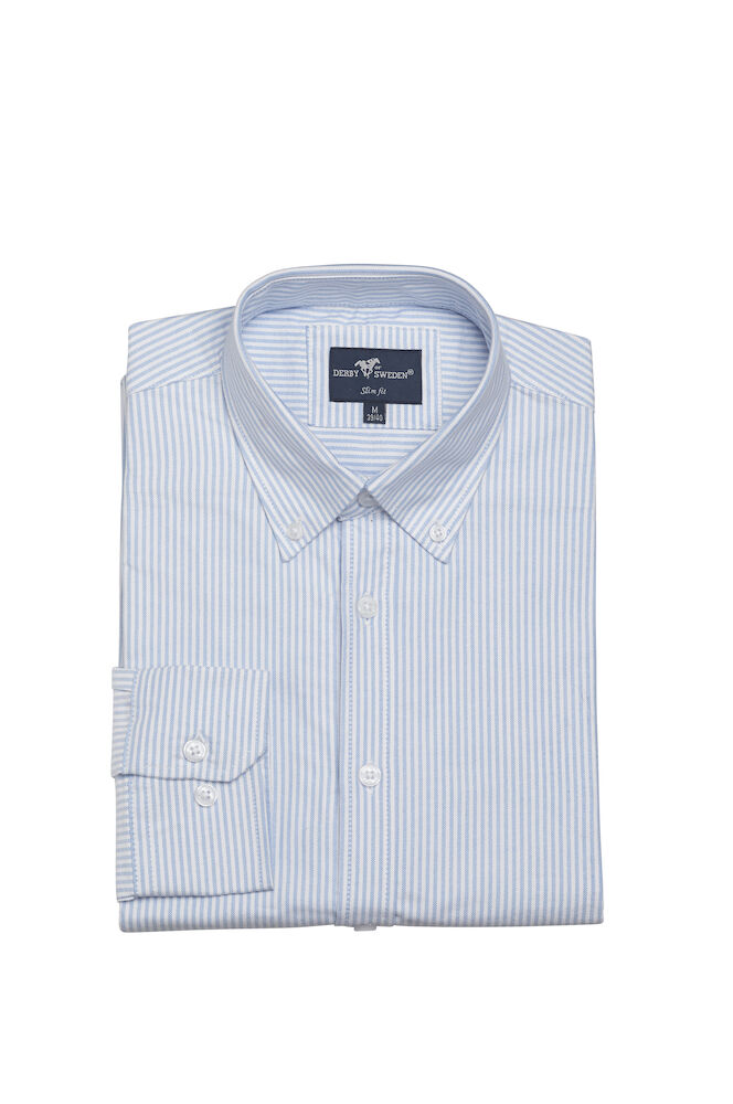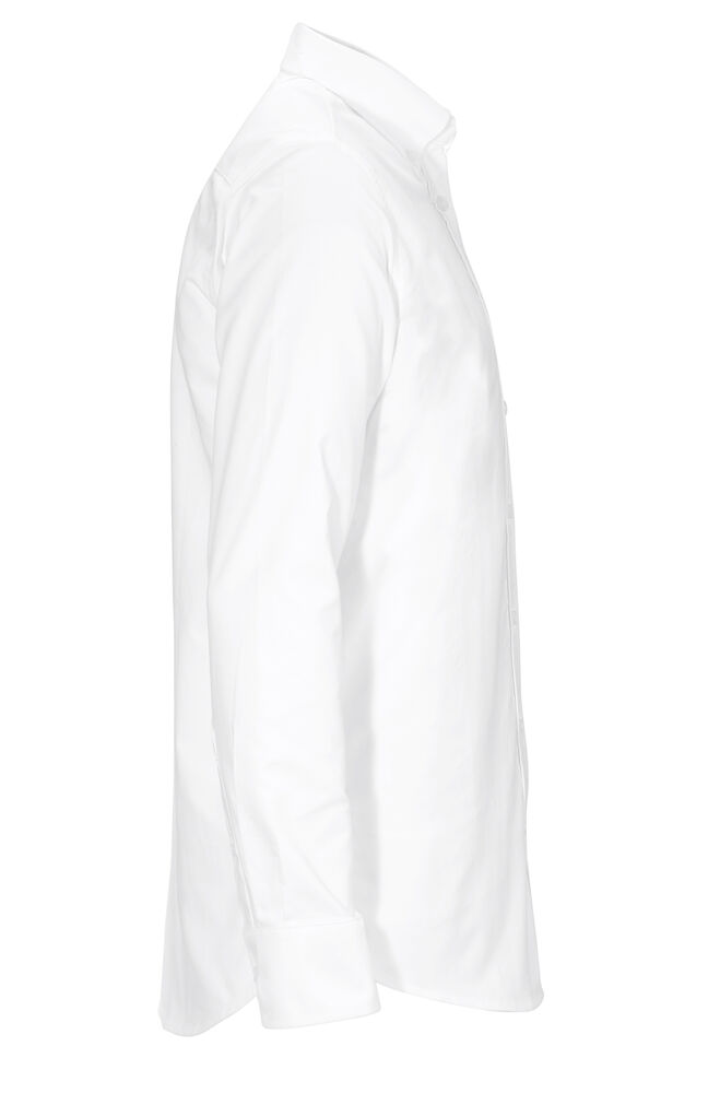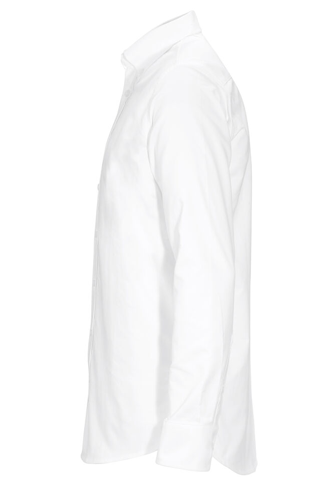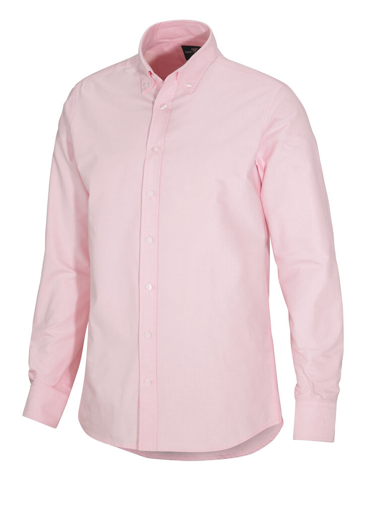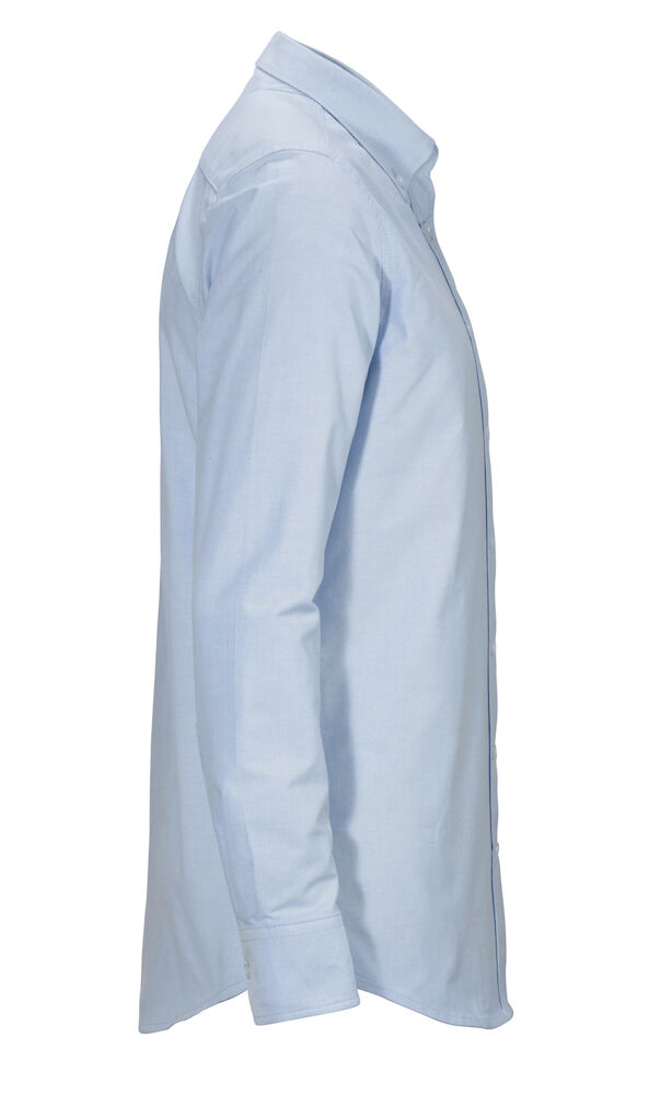 Oxford skjorte med perlemorsknapper. Broderi som går ton-i-ton i nakken. Herremodellene har button down-krage. Comfort har i tillegg en brystlomme. Damemodellen har en turn down-krage og er innsvingt for å gi en bedre passform.