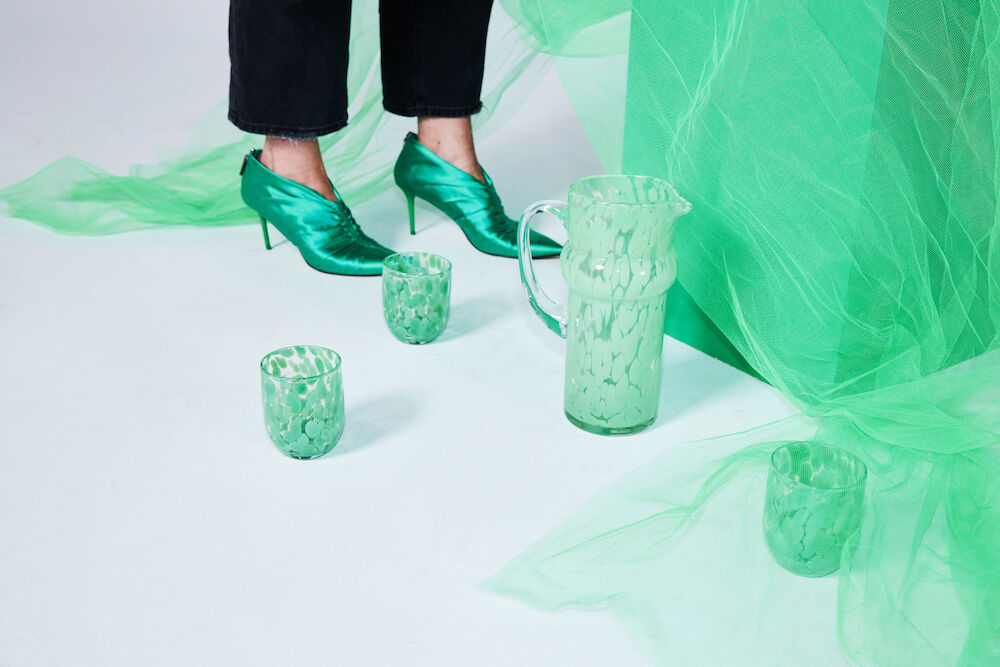 Som en lekker karamell – god og uimotståelig. Glasset Messy er laget av håndblåst glass med et lekent konfettimønster av blandede eplegrønne toner. Messy er perfekt til drinker, juice, melk eller kaffe. Det kan også brukes som lyslykt eller som et fantastisk tannbørsteglass som livner opp badet. Glasset er håndblåst – farge- og teksturforskjeller kan forekomme.