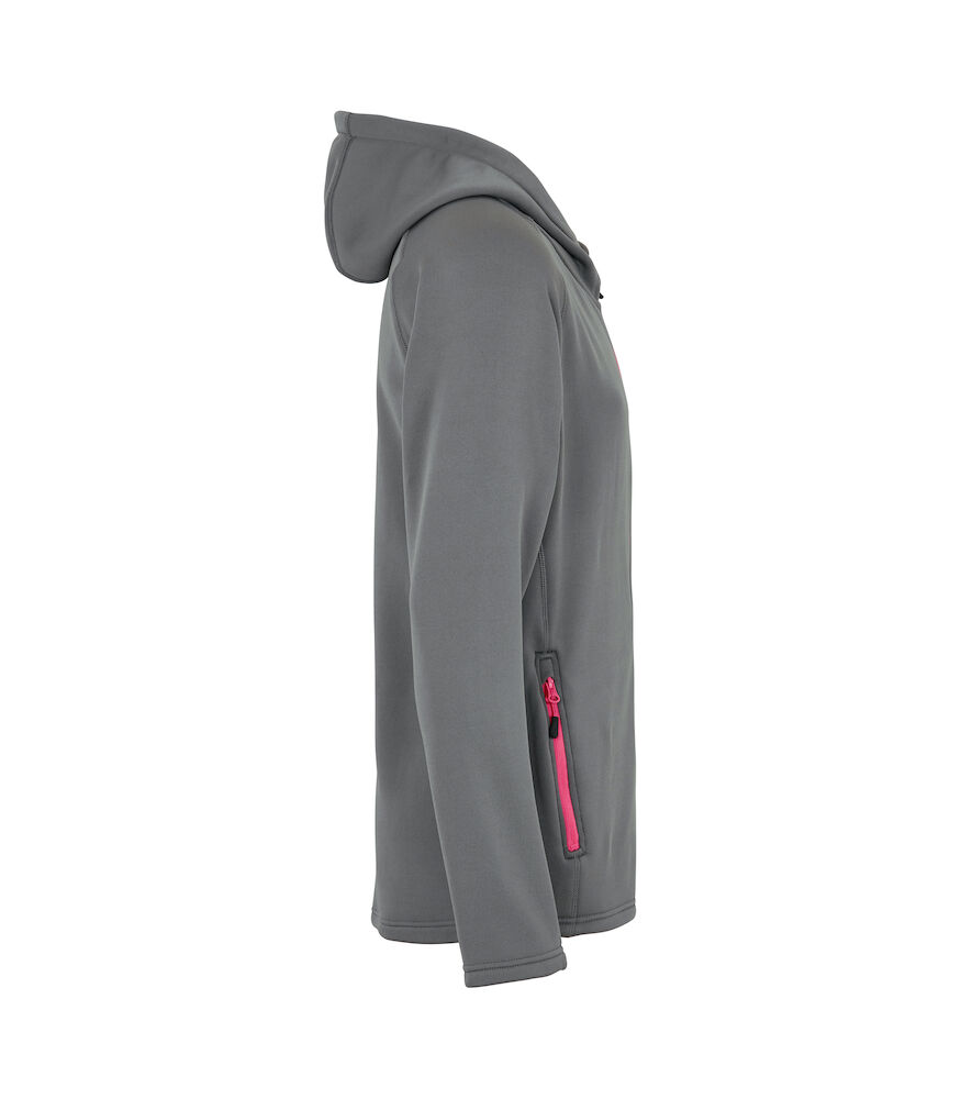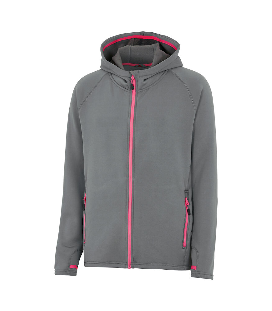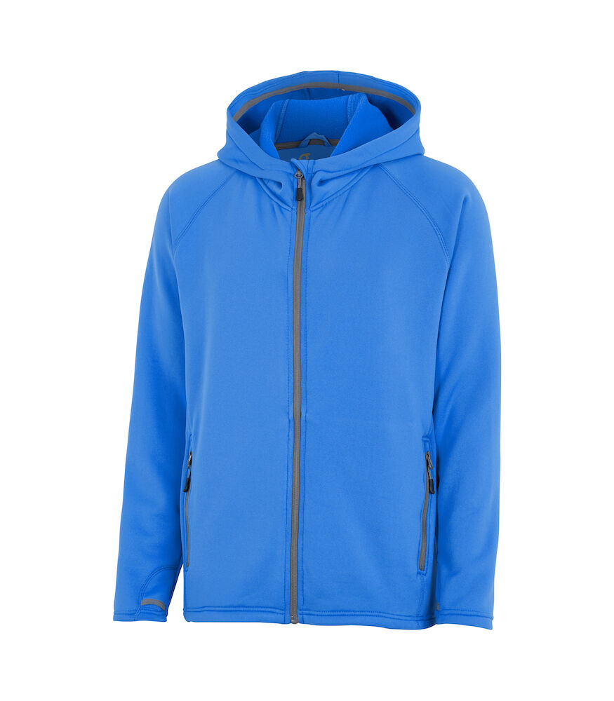 Hettejakke i god kvalitet som både varmer og transporterer fukt. Konstrastfarget glidelås i front og på lommene. Børstet innside.