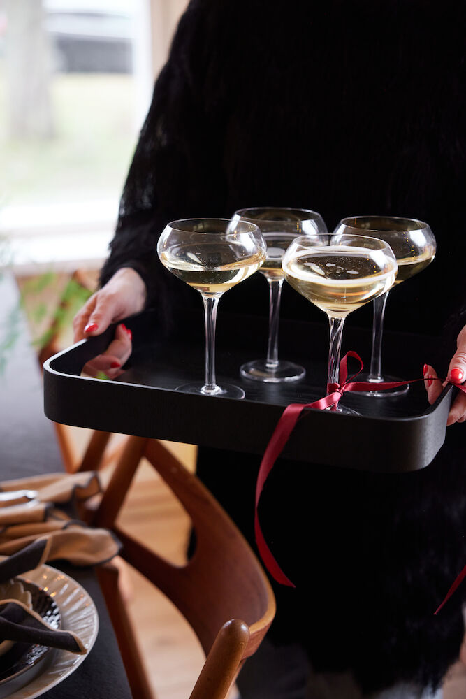 Brettet Hanna er laget av wengetre fra sertifisert ansvarlig skogbruk – et elsket og slitesterkt materiale som passer perfekt i ethvert hjem. Dette rektangulære brettet har buede kanter og integrerte håndtak som gir en praktisk og stabil funksjon. Med sitt stilige design er Hanna-brettet perfekt for bruk hver dag, måneder og år som kommer. Den finnes i både naturlig trefarge og sort, som gir en fin kontrast og gjør den like verdsatt på kontoret som ved bursdagsfeiringer. Design av Studio Sagaform. Leveres i klassisk gaveeske.