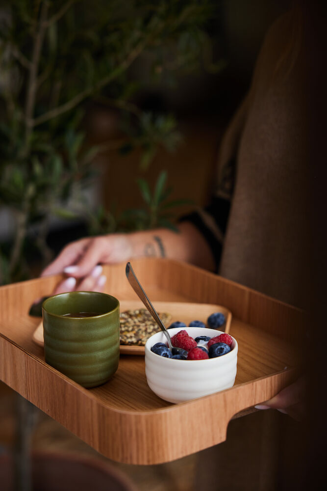 Brettet Hanna er laget av FSC-merket rødeik – et elsket materiale som er slitesterkt og passer i alle hjem. Brettet er rektangulært med buede kanter. Håndtakene er integrert for å gi en praktisk og stabil funksjon. Et brett i stilig design, klar for hver dag, måned og år inn i fremtiden.