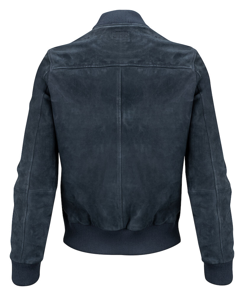Bomberjakke i skinn med preget JHS-logo bak. Kraftig ribb i krage, nederkant og ermeavslutninger. To frontlommer med glidelås og to innerlommer. Leveres i en biobasert, komposterbar pose.