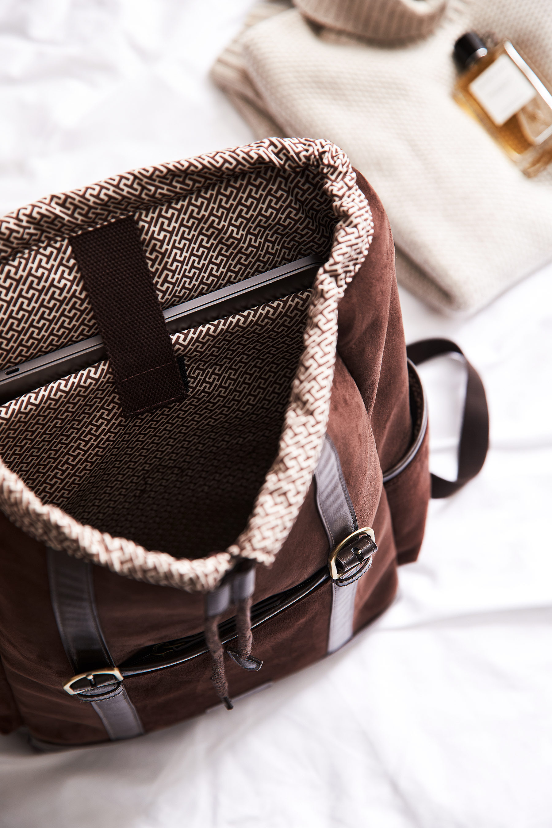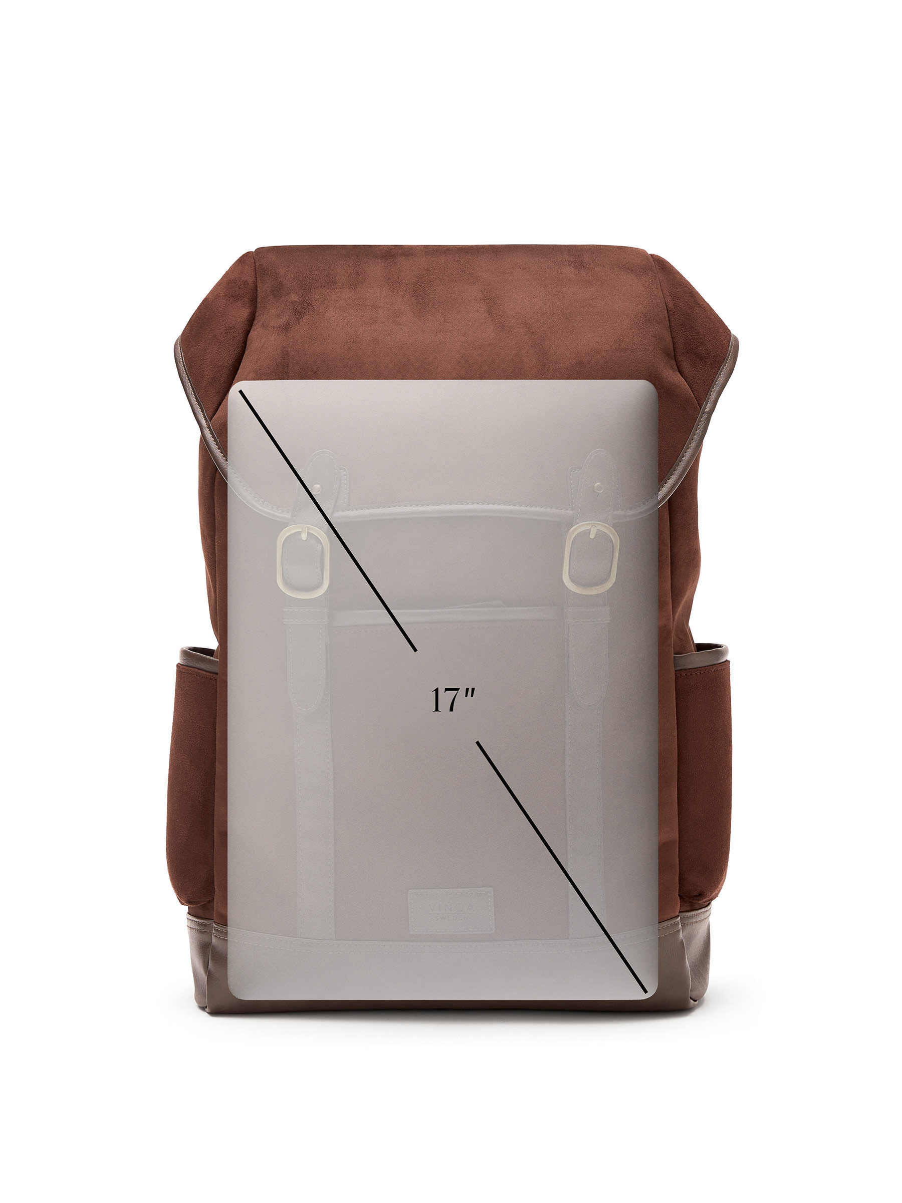 Eksklusiv ryggsekk i et klassisk design. Laget av et fint materiale i imitert semsket skinn med messingdetaljer. Funksjonalitet kombinert med et stilig design gjør denne ryggsekken perfekt til både arbeid og fritid. Utstyrt med en lomme som kan romme datamaskiner opptil 17”. Passer til datamaskiner hvor den totale størrelsen er på 17 tommer. Husk at målene på displayet ikke er de samme som målene på hele datamaskinen.