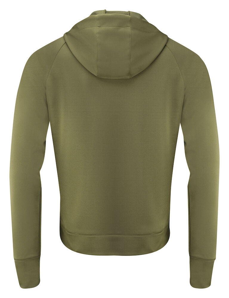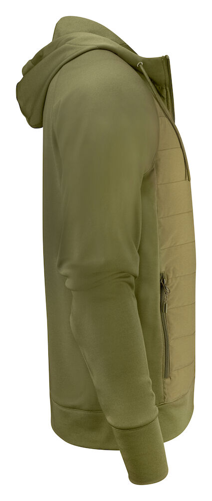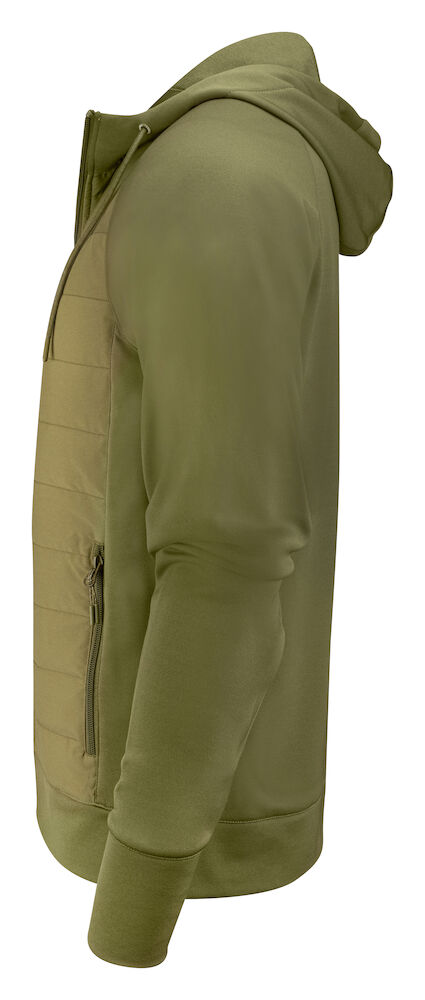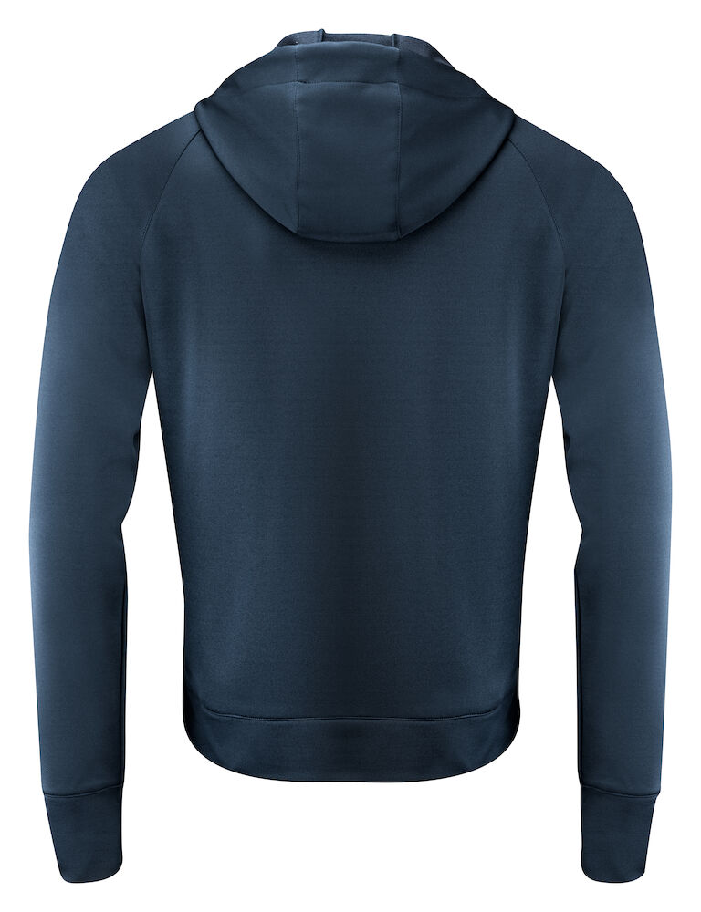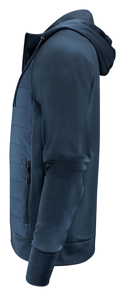Hettegenser med hel glidelås. Frontdelen – som er lett vattert – er kontrastfarget. Genseren har to sidelommer med glidelås, raglan-ermer og tommelåpninger. Leveres i en biobasert, komposterbar pose.