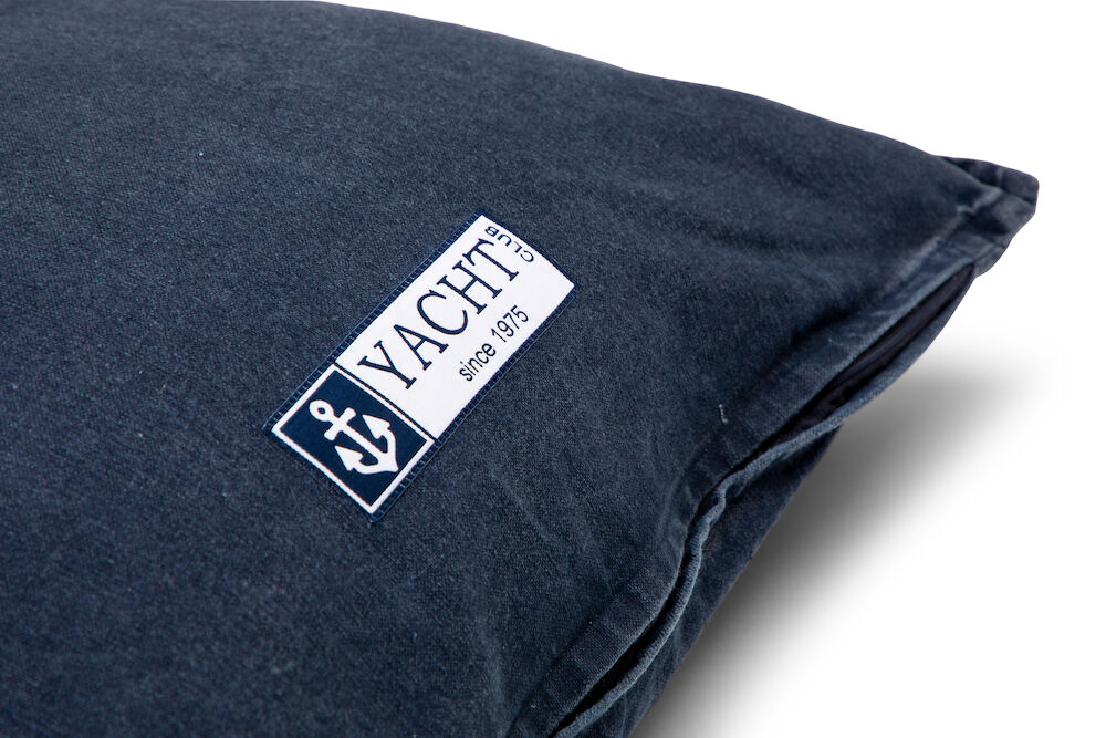 Putetrekk laget av 100 % bomull. Dekorert med merket "Yacht Club Since 1975". Malje og tau på den ene kortsiden gjør puten egnet for oppheng.