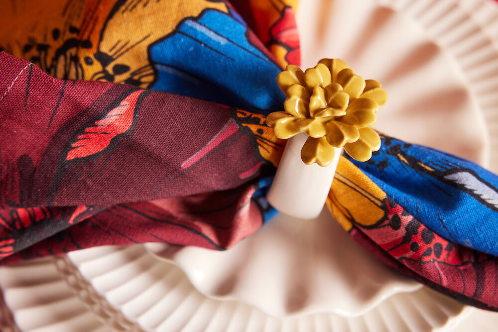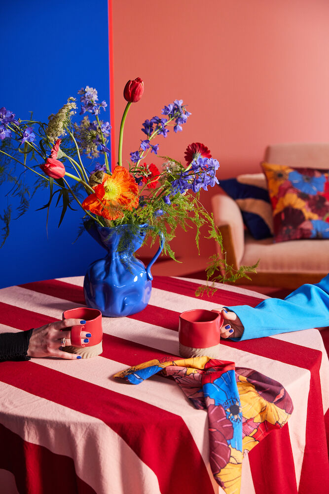 Blomstrende stoffservietter gir en grenseløs og energisk borddekking. Servietten Leya er en fargeeksplosjon som setter tonen for hele borddekkingen. Blander du i tillegg med servietter eller duker som har striper eller firkanter, blir det en ekte Byon-duk. Laget av sertifisert økologisk bomull. Kommer i en 2-pakning.