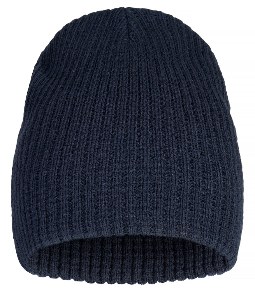 Dobbel strukturstrikket lue med fire sømmer øverst.