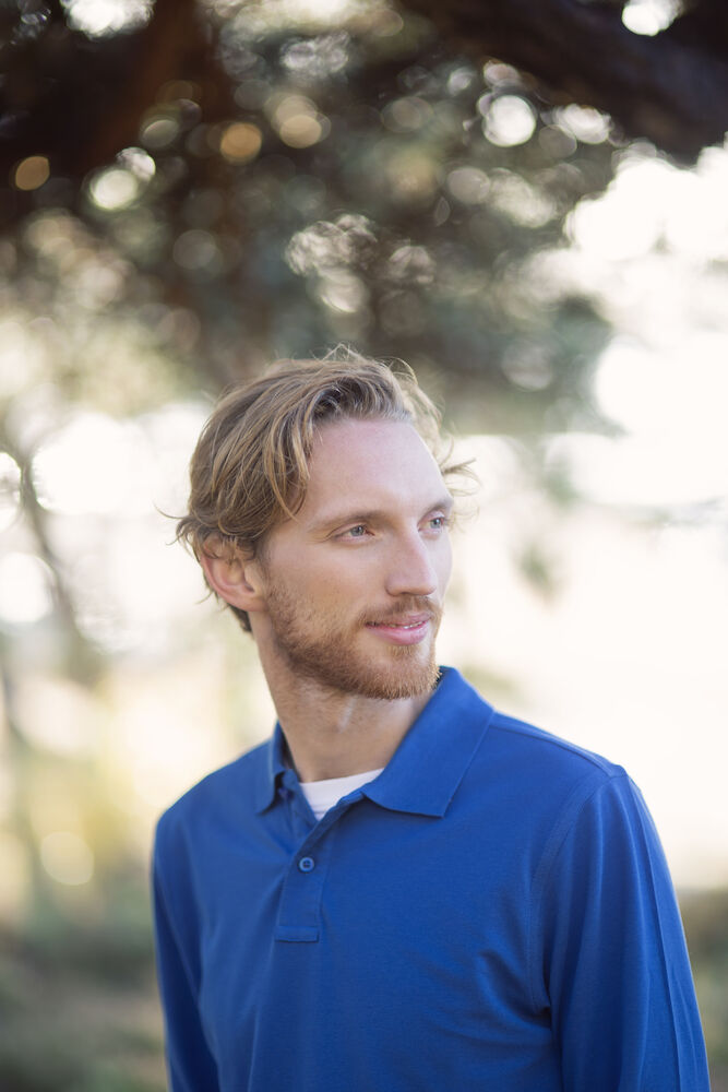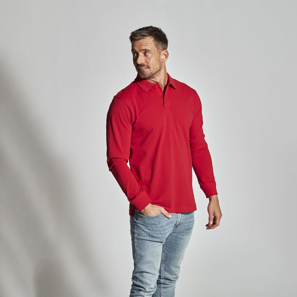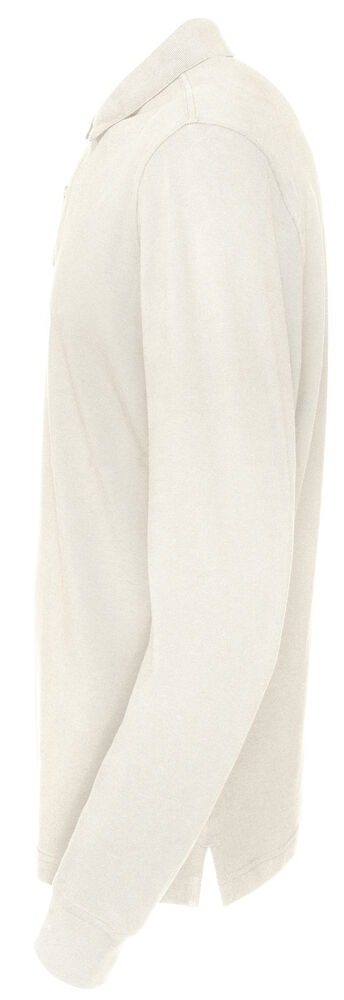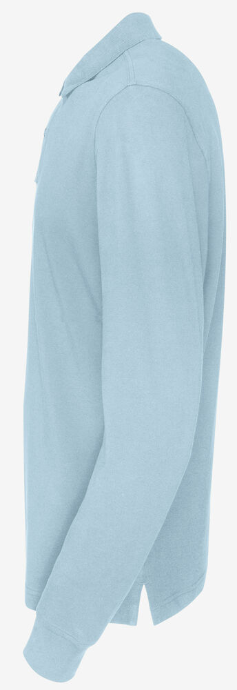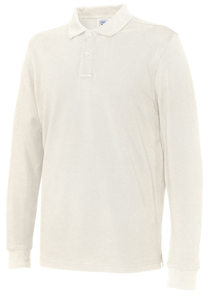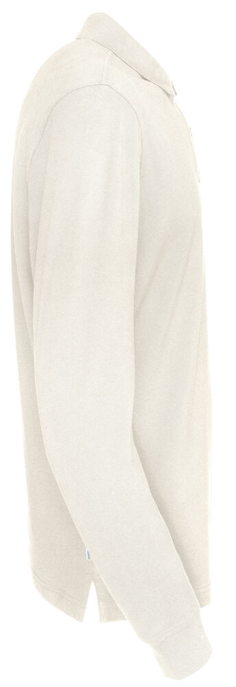 Langermet pique i en klassisk pique-strikk. Modellen har normal passform, strikket ribb i kragen, to knapper i den forsterkede knappestolpen, splitt i siden og mansjett i ermeavslutningen.