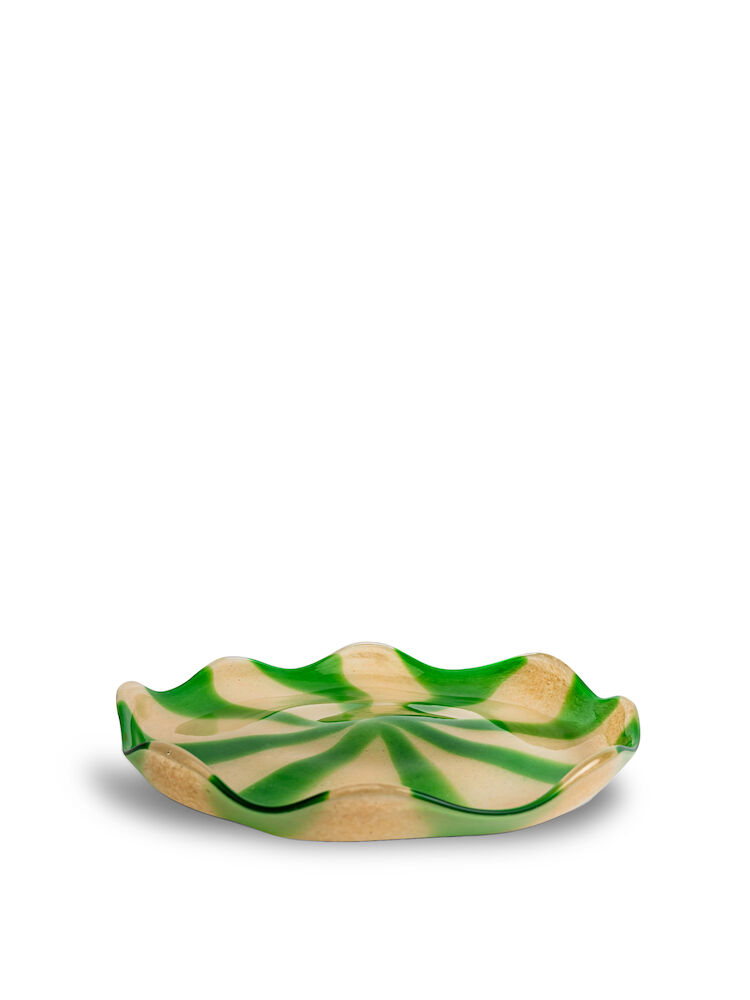 Fatet Curve i grønt er et håndlaget fat i glass, med organiske former og fantastiske kurver i grønt og beige. Den eplegrønne fargen er både kul og luksuriøs sammen med den beige. Hvert fat er unikt. Fatet Curve tilhører Curve-familien hvor du finner flere fat og lykter med fantastiske kurver.