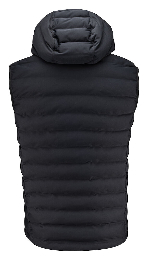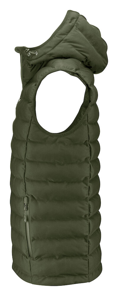 Vattert vest, perfekt på kalde høst- og vinterdager. Vesten er laget av vind- og vanntett materiale med god pusteevne. Vanntette glidelåser i front og sidelommer. Innerlommer. Justerbar hette med elastiske snorer på sidene. Denne varen er pakket i en komposterbar polypose.